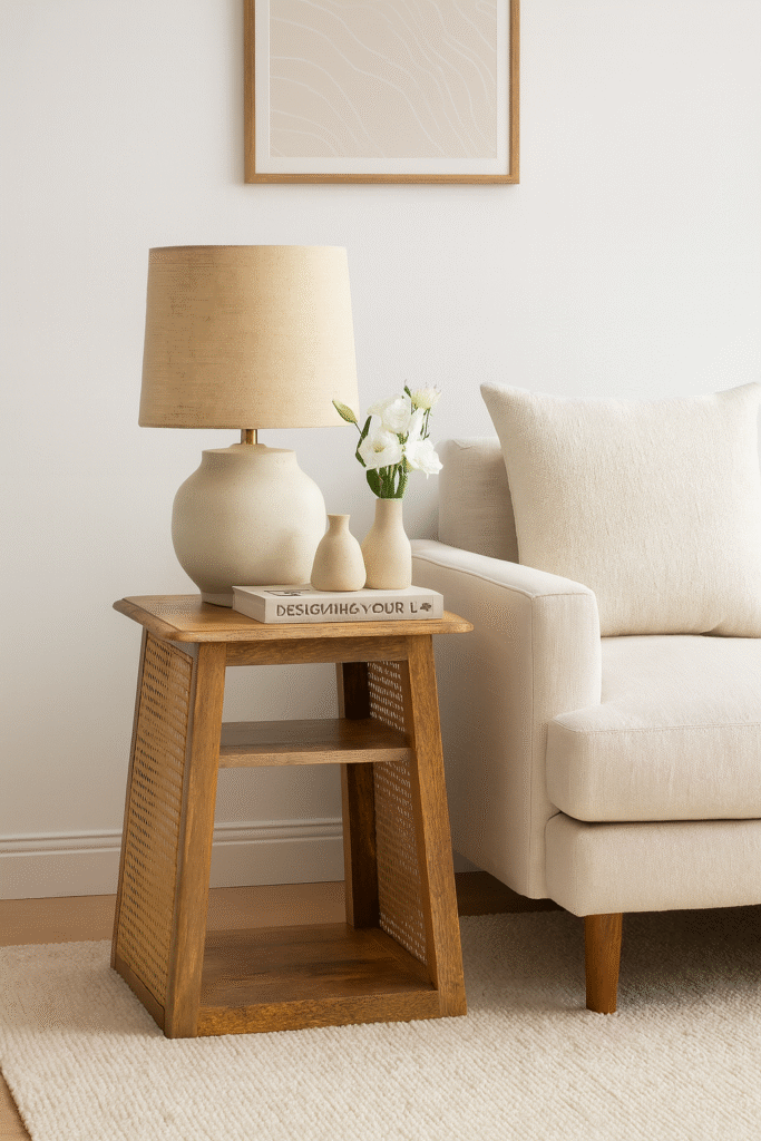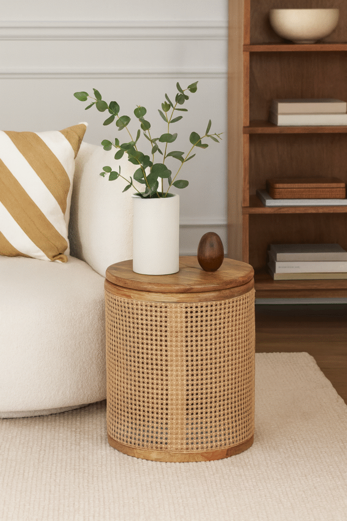 WOODKALAKAR Rustic Wooden Cane Side Table