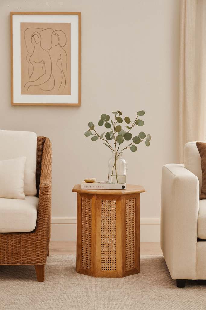 Woodkalakar Hexagonal Wooden Cane Side Table