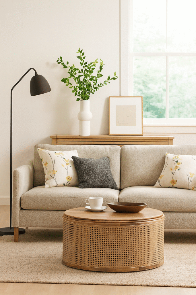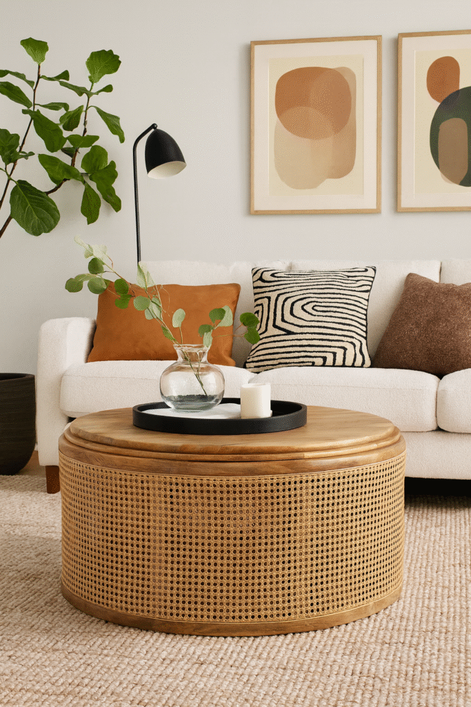WOODKALAKAR Handcrafted Round Cane Coffee Table