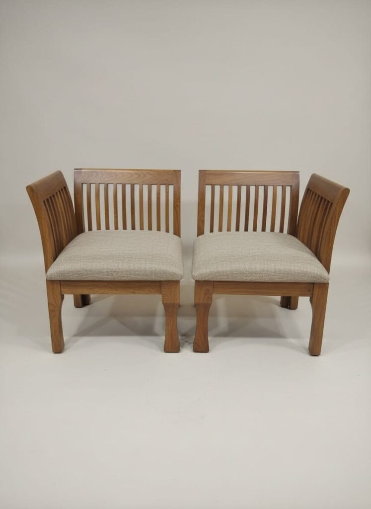 Woodkalakar Solid Teak Wood Upholstered Accent Chair with Cushioned Seat | Premium Teak Wood Living Room Chair | Modern Slatted Back Design