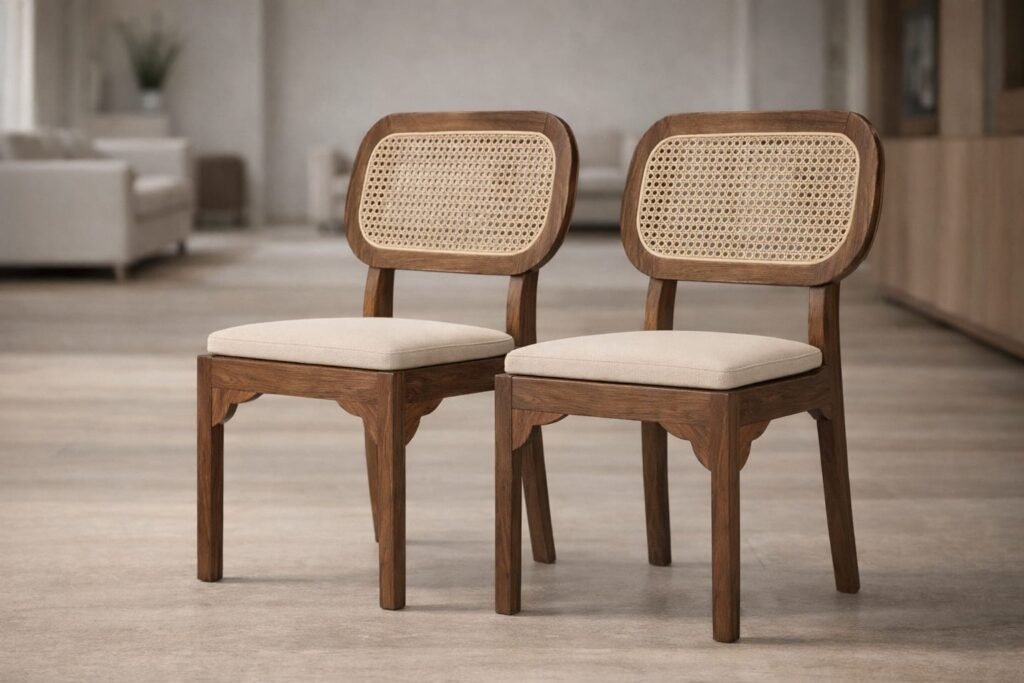 Woodkalakar Set of 2 pair Solid Sheesham Wood Dining Chair with Cane Backrest & Cushioned Seat | Handcrafted Wooden Chair for Dining & Living Room | Natural Finish