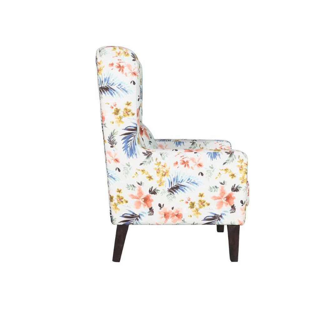 The sturdy wooden legs offer excellent support and durability, while the contemporary floral print infuses your décor with a fresh, vibrant feel. Whether placed in a cozy reading nook, a modern living room, or a stylish lounge area, this chair effortlessly combines comfort with high design.