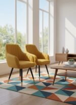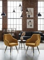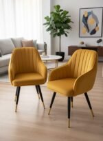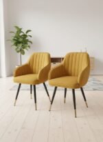 Bring timeless sophistication to your home with the Miroza LuxeCurve Velvet Accent Chair — the perfect blend of comfort, color, and craftsmanship. Upholstered in premium mustard-yellow velvet, this designer chair adds warmth and elegance to any interior space. Its curved backrest and soft cushioning provide ultimate comfort, while the sturdy wooden frame ensures long-lasting durability. The chair’s black legs with golden metal tips enhance its modern appeal — making it a stylish addition to living rooms, bedrooms, vanity corners, or office lounges. Whether you use it as a reading chair, dining chair, or statement accent piece, this chair elevates any décor with effortless charm.