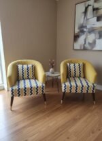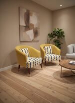 Woodkalakar Modern Yellow Accent Lounge Chairs with Zig-Zag Pattern – Premium Teak Legs (Set of 2)
