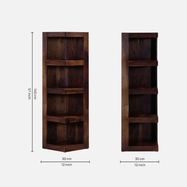 Sheesham Wood Corner Book Shelf In Provincial Teak Finish