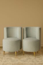 The CosmoLuxe Modern Lounge Chair is where comfort meets contemporary style. Upholstered in a premium light blue fabric with a chic geometric pattern, this chair makes a bold yet elegant statement in any room. Its high backrest, plush cushioning, and golden tapered legs combine functionality with luxury, creating a stylish accent for modern homes. Perfect for living rooms, bedrooms, or reading corners, it adds both charm and comfort to your interiors.