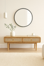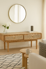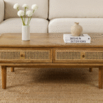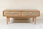 Add timeless charm and functionality to your living space with the WOODKALAKAR Mid-Century Modern Wooden Coffee Table. Expertly handcrafted, this table combines the elegance of natural wood with the earthy texture of cane detailing, creating a warm and inviting focal point for any boho-inspired or modern home.