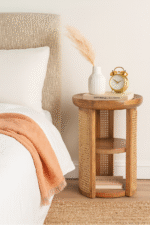 Bring warmth and texture to your space with the Round Wooden Side Table — a perfect blend of boho elegance and everyday functionality. Featuring handcrafted cane detailing and a solid wood frame, this accent table adds natural charm to any setting.