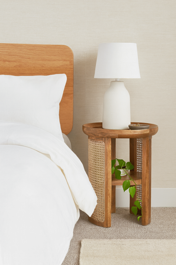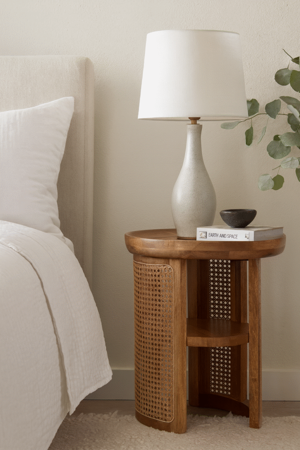 Bring warmth and texture to your space with the Round Wooden Side Table — a perfect blend of boho elegance and everyday functionality. Featuring handcrafted cane detailing and a solid wood frame, this accent table adds natural charm to any setting.