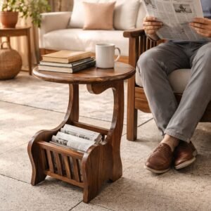Add a touch of artisanal charm to your space with the WOODKALAKAR Rustic Wooden Cane Side Table. Meticulously handcrafted by skilled artisans, this elegant side table features a solid wooden frame paired with a handwoven cane panel, offering a perfect blend of natural beauty and functional design.