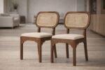 Woodkalakar Set of 2 pair Solid Sheesham Wood Dining Chair with Cane Backrest & Cushioned Seat | Handcrafted Wooden Chair for Dining & Living Room | Natural Finish