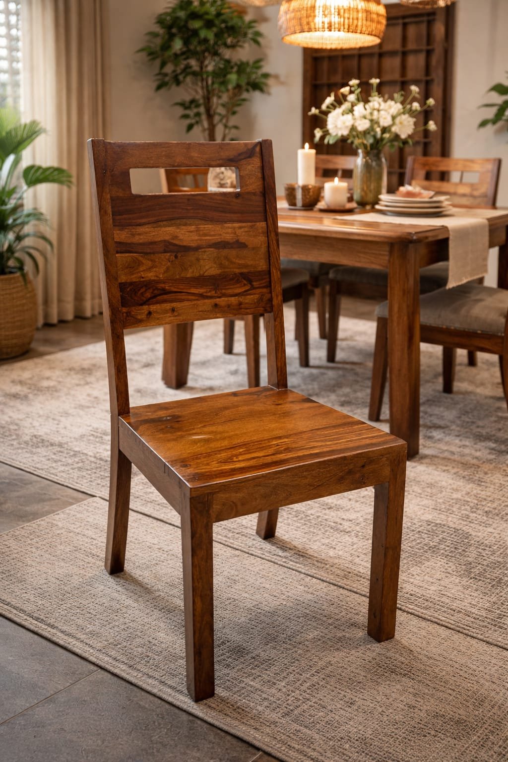 Woodkalakar Solid Sheesham Wood Dining Chair | Handcrafted Wooden Dining Chair for Home & Restaurant | Natural Finish | Sturdy & Durable