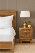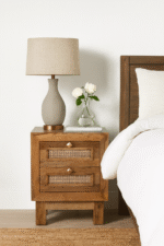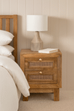 Elevate your bedroom with the warm, earthy charm of the Mangowood 2 Drawer Bedside Table. Designed with a rustic sensibility and boho flair, this handcrafted nightstand brings natural textures and timeless style to your space.