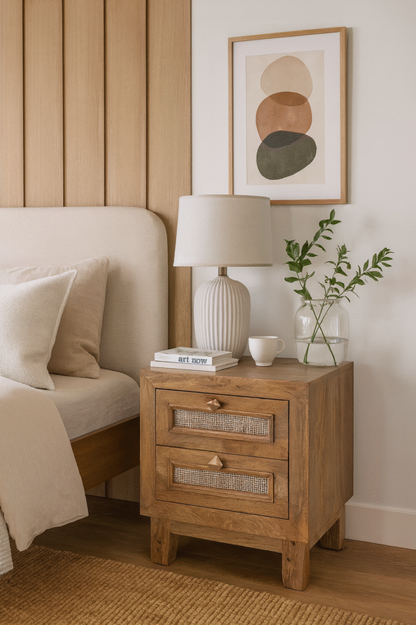 Elevate your bedroom with the warm, earthy charm of the Mangowood 2 Drawer Bedside Table. Designed with a rustic sensibility and boho flair, this handcrafted nightstand brings natural textures and timeless style to your space.